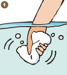 - Ensure that it is soft before use. It will turn hard after drying. Using it while hard will cause damage to the sponge during repeated use.